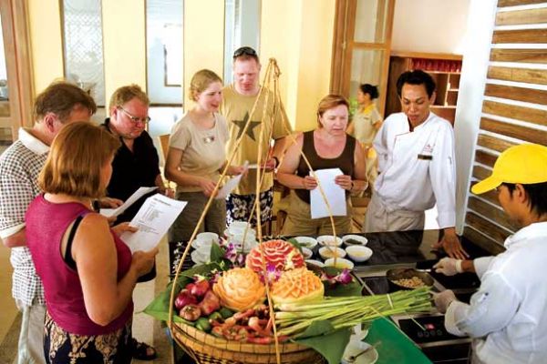 The lesson on cooking last about two hours and is given by restaurant cooks in English. Travelers would feel excited when they can enjoy the dishes they prepare themselves with the guide of cooks.